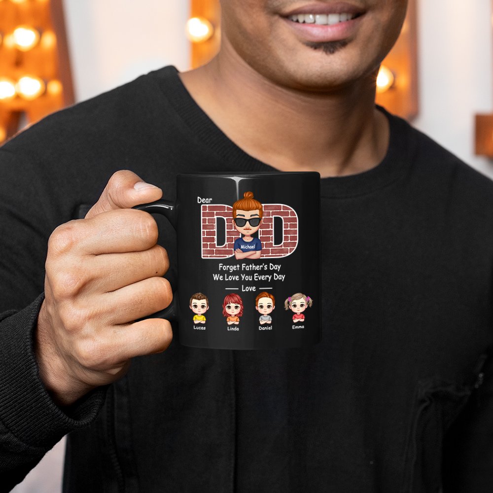 The Personalised We Love Dad Every Day Black Ceramic Mug is made of high-quality ceramic material that ensures long-lasting durability. This mug has a glossy black finish which enhances the beauty of its design. It is perfect for daily use, and can be easily cleaned using soap and water.