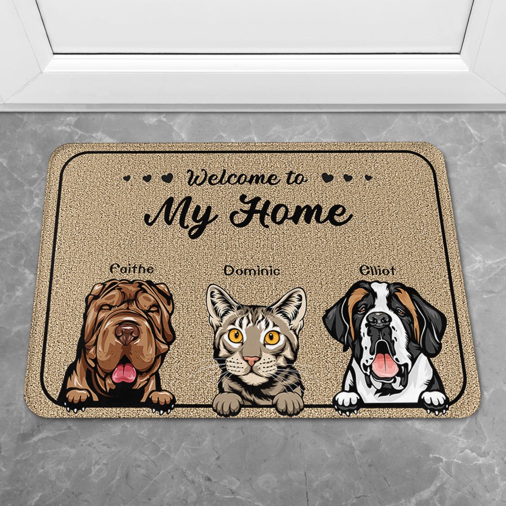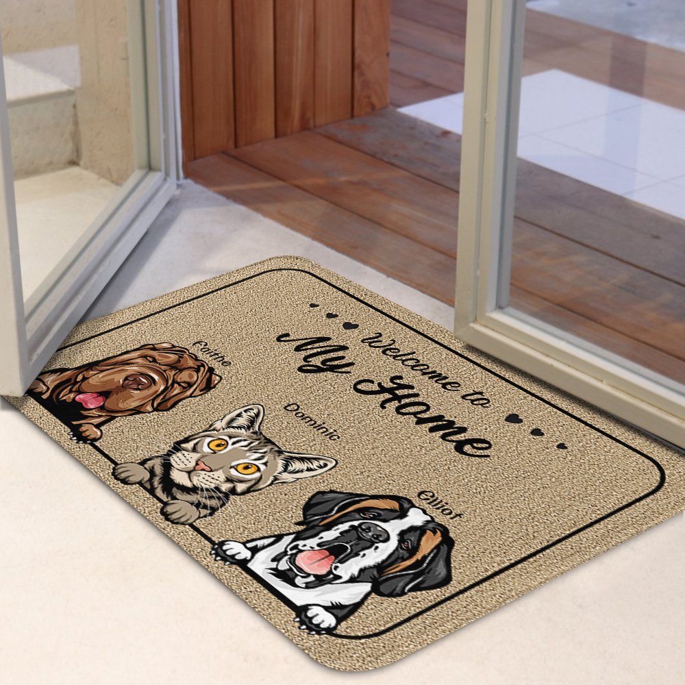 The phrase "Welcome To Our Home" shows the humor and fun of pets and their owners. Print this unique phrase on the mat with your pet's exclusive name to treasure the cuteness of your pet and the owner's love for your pet forever.