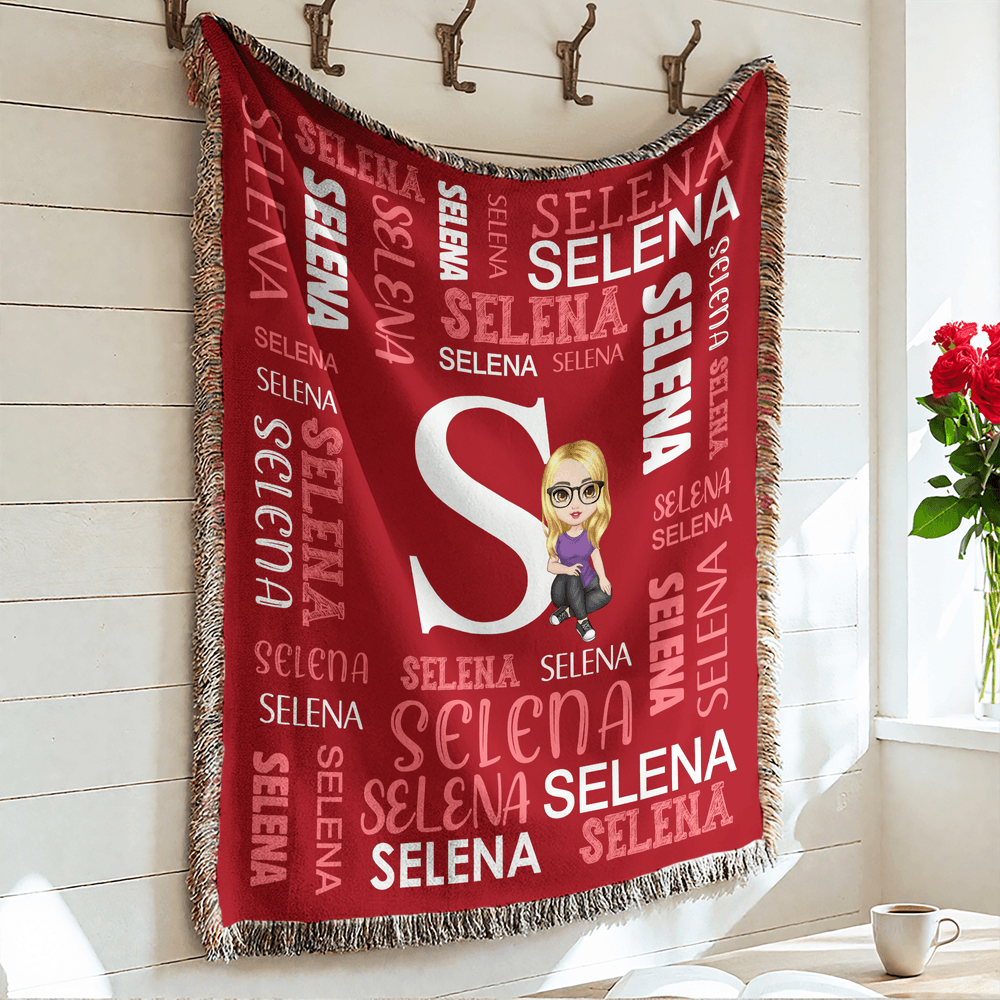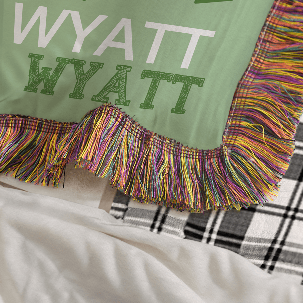 This custom fringed blanket artfully blends playful word-cloud patterns with adorable cartoon character designs. It can be Personalised with a name and initials, is available in twelve rich colors, and is finished with delicate fringe along the edges—perfectly merging individuality with modern style to fill any space with a warm, inviting atmosphere.