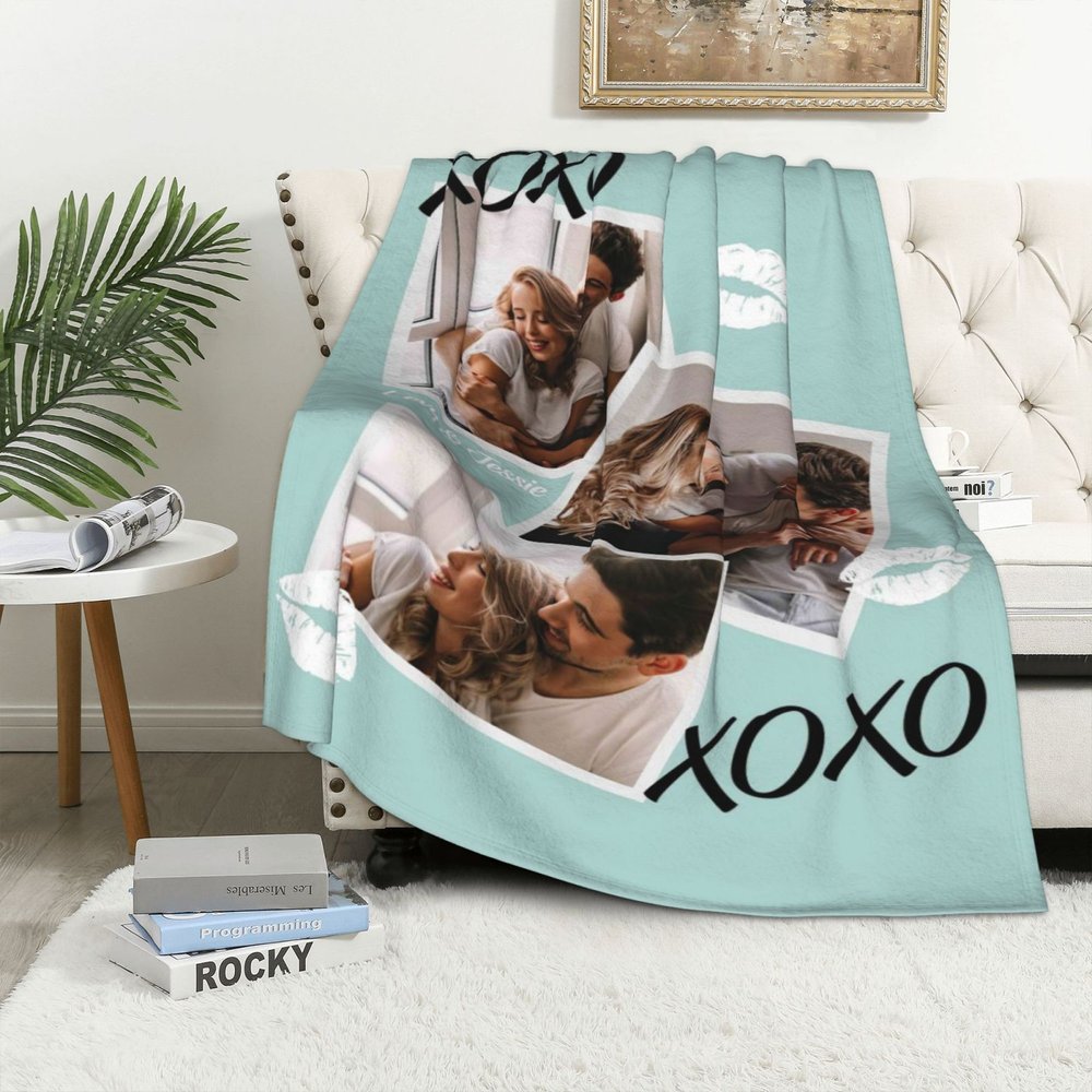Our XOXO photo couple blanket offers a unique way to capture and cherish your most precious moments. You can customize it with names and 1-4 sweet photos of you and your partner, it becomes a heartfelt reminder of the beautiful memories you've created together.