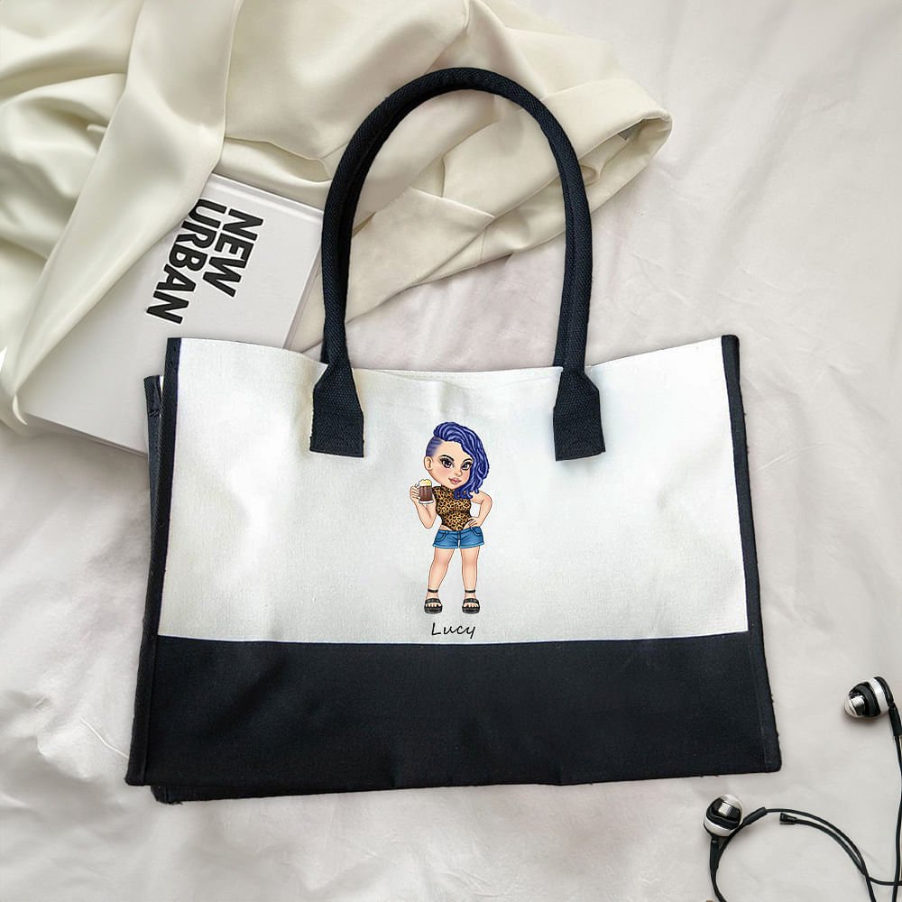 This tote bag embraces the Y2K cultural and fashion trend, featuring a unique cartoon character design. Personalise it with your choice of Y2K-style cartoon imagery and a custom name, making it a truly special accessory that reflects individual style.