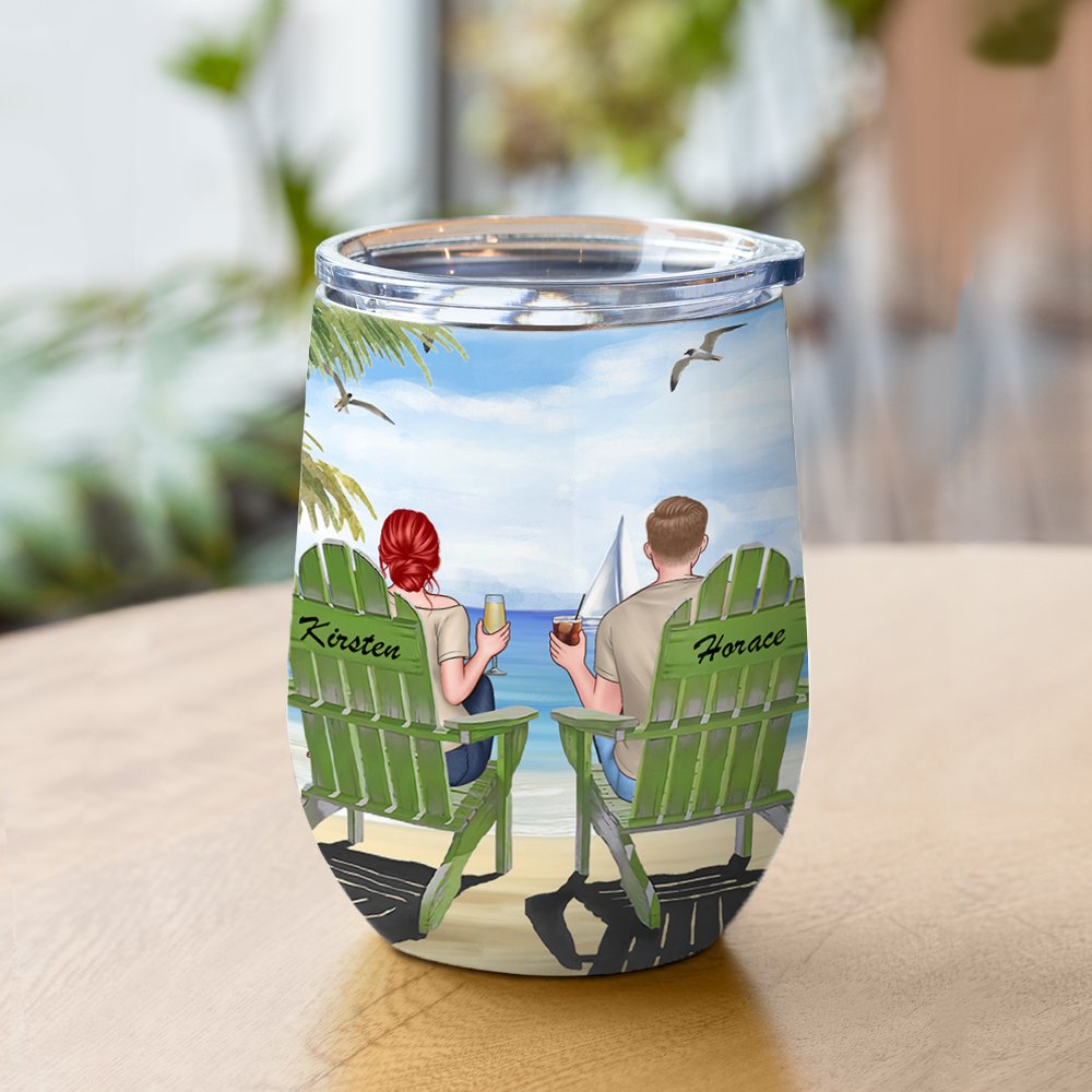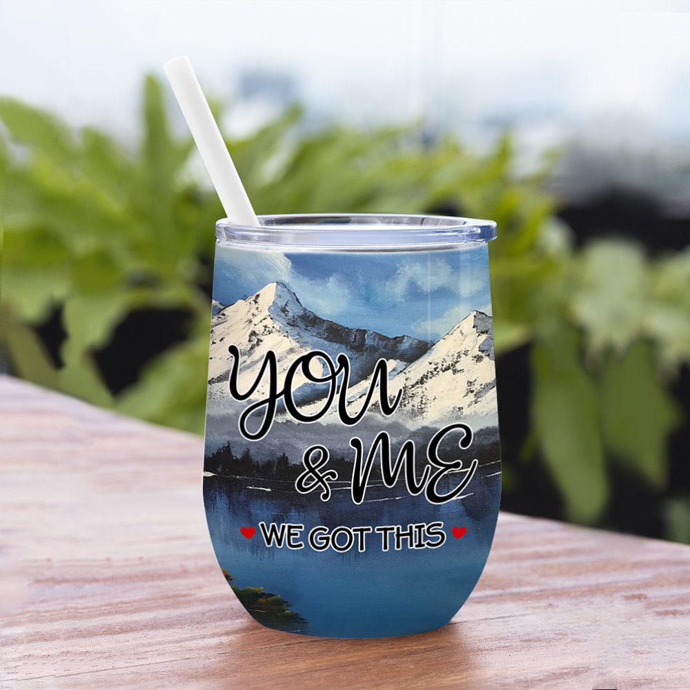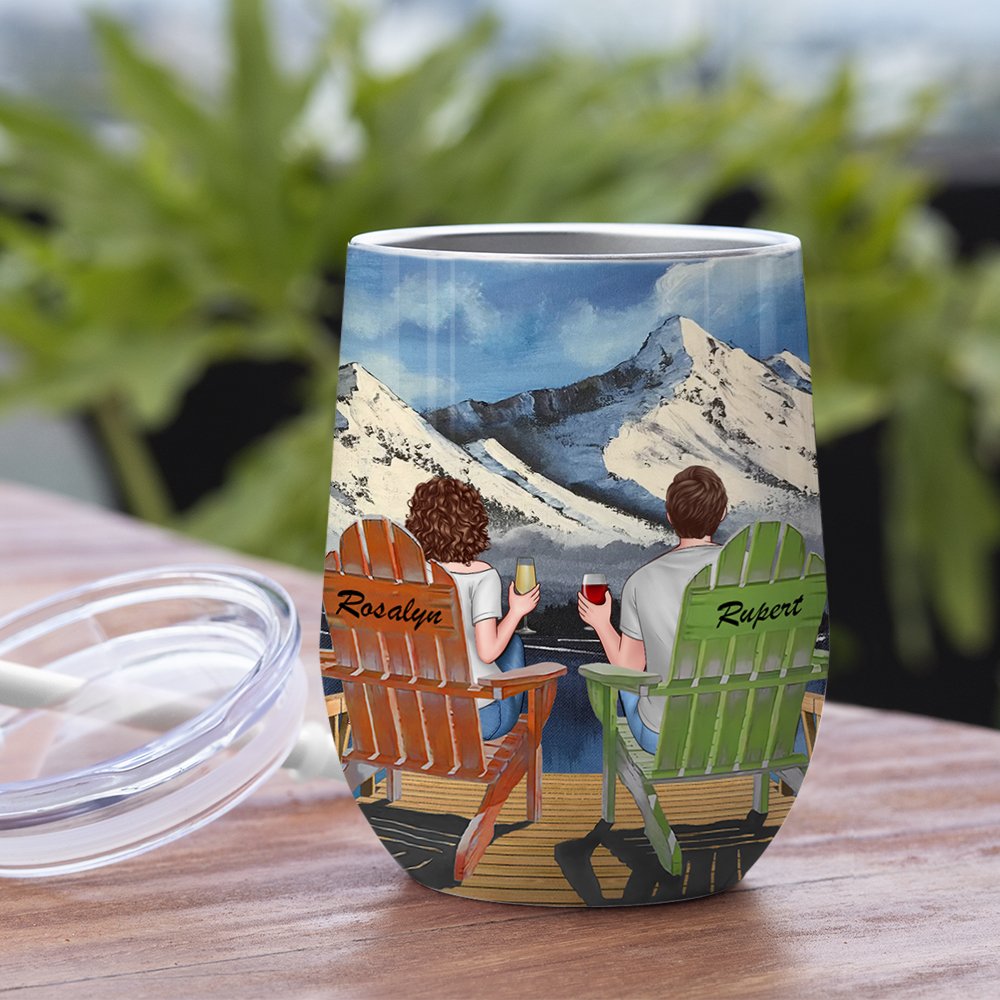 Personalised You and Me Couple Watch Snow Mountain Scenery Wine Tumbler Anniversary Easy to Clean