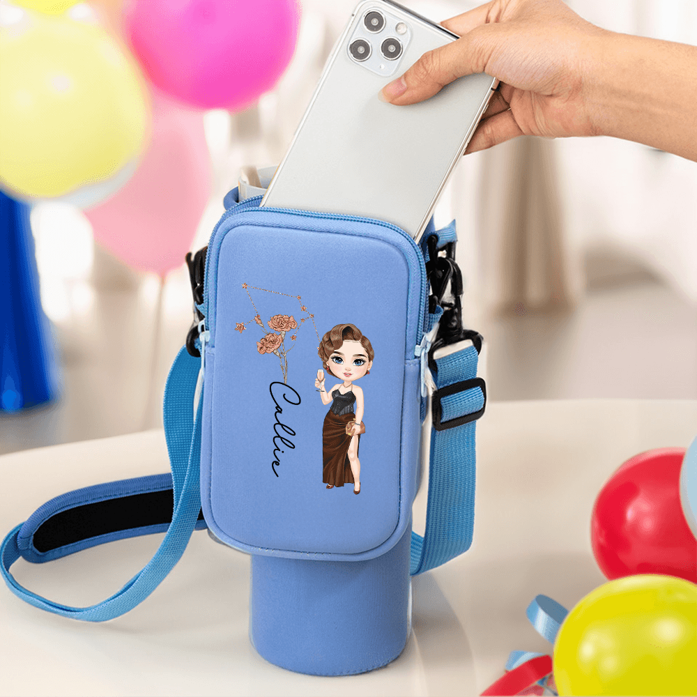 Our water bottle carrier bag stands out with its zodiac signs and birth flowers. It also can be customized with a stylish cartoon character and name, perfectly reflect your unique personality. We provide 4 bag colors, beige, pink, black, or blue for you, and you can choose based on your preference.