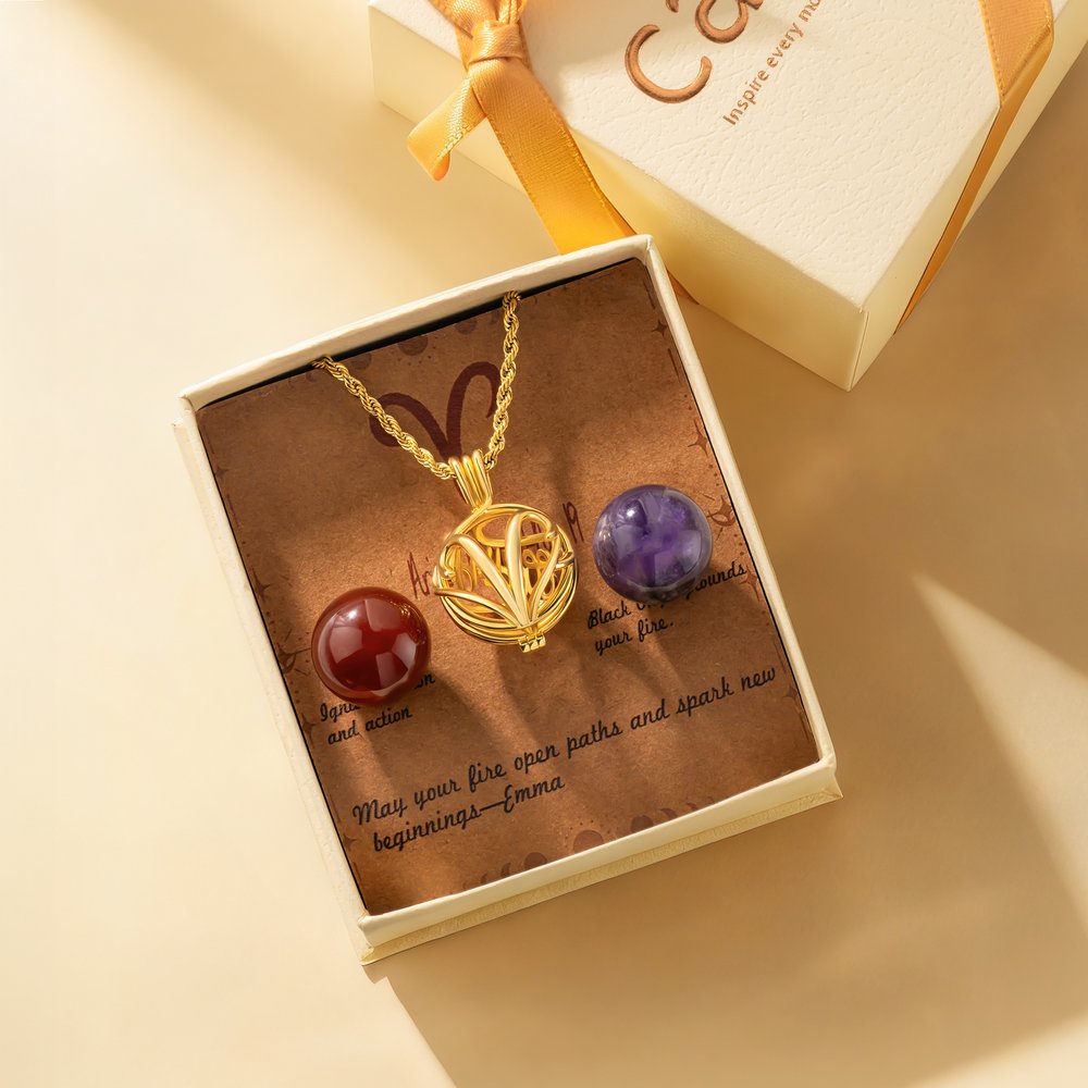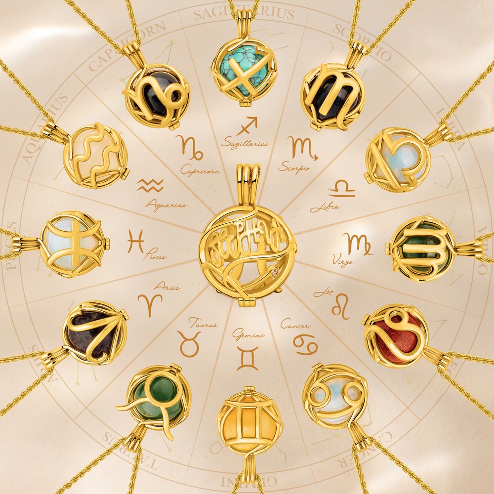 This necklace features an exquisite design inspired by the twelve zodiac signs. Each sign is paired with a unique crystal ball, beautifully blending the mysterious essence of the zodiac with the sparkling clarity of crystal. A golden spherical outline encases the crystal ball, symbolizing the mystical power that protects each sign. Additionally, the necklace can incorporate your name into the design, making it even more personal and unique.