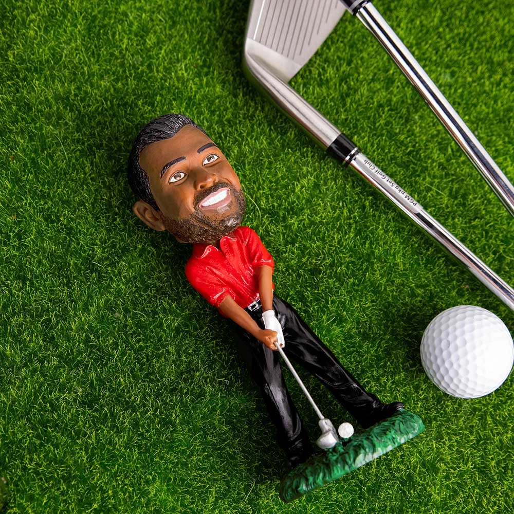 The figurine is custom-made based on the photo you uploaded. Skilled artisans will meticulously craft the bobblehead doll to resemble your photo, capturing his unique features, hairstyle, and golfing attire. This Personalised touch ensures that the gift is one-of-a-kind and holds sentimental value.